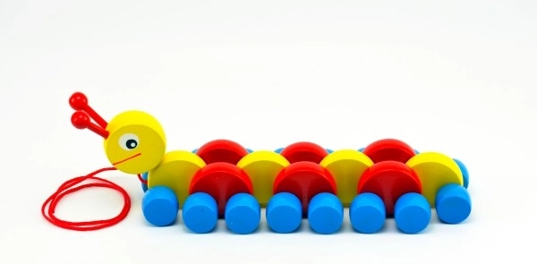 Giv dine børn denne farverige træcaterpillar, som er ideel til at udvikle små børns motoriske færdigheder. Når man trækker den, “kryber” larven og giver børnene glæde ved bevægelse.