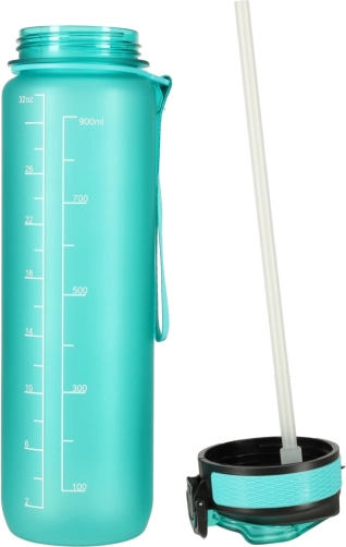 Det praktiske låg med lås beskytter mod lækage, mens det integrerede sugerør gør det nemt at drikke selv under gang eller træning. Flasken er let at bære, og dens volumen på 1 liter er ideel til hydrering hele dagen.
