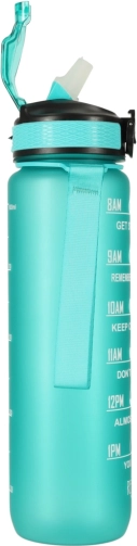 Stilfuld vandflaske på 1 l af det holdbare materiale Tritan hjælper dig med at holde styr på væskebalancen hele dagen. Den har et praktisk drikketud med sugerør til komfortabelt at drikke uden at vippe, en sikkerhedslås på låget mod utilsigtet åbning og motiverende tidsmarkeringer, som minder dig om regelmæssigt væskeindtag. Materialet er BPA-frit og egnet til kontakt med fødevarer.