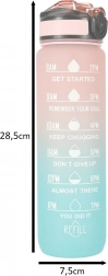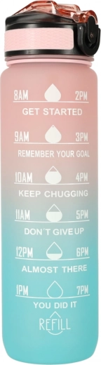 Denne praktiske vandflaske på 1 liter er ideel til arbejde, skole og træning. Takket være tidsmarkeringer med motiverende fraser har du styr på væskeindtaget hele dagen. Det lette og holdbare design i Tritan uden BPA ligner glas, men er langt mere slagfast.