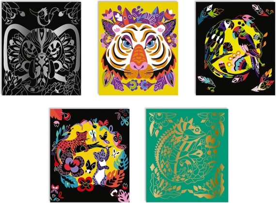 Opdag et kreativt sæt til børn, der underholder i timevis: skrabebilleder Verdens dyr fra mærket JANOD. Ved at skrabe det farvede lag fremhæver børnene gradvist smukke dyremotiver og udvikler finmotorik, tålmodighed og sans for detaljen. Ideelt både hjemme og på farten.
