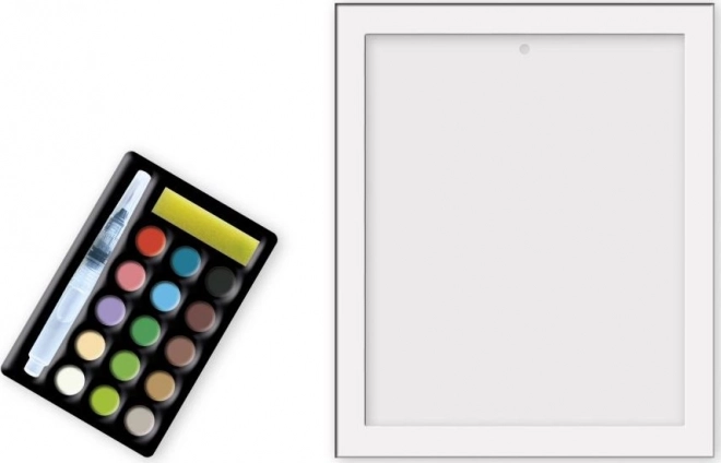 Pakken indeholder: 2 billeder, palet med farver, fyldbar pensel og ramme.