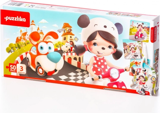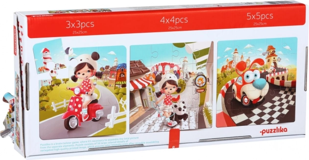 Puzzlika Glade historier 3 i 1 er et fantastisk sjovt puslespil designet specielt til små børn. Hvert sæt indeholder 50 faste og holdbare brikker, som kan samles til tre separate billeder med en størrelse på 25 x 25 cm. Hvert billede har et forskelligt antal brikker: 3x3, 4x4 og 5x5. Puslespillet er fremstillet med kvalitets flerlags karton med en skinnende overflade, af økologisk dyrket træ. Puslespillet kan let rengøres med en fugtig klud.
