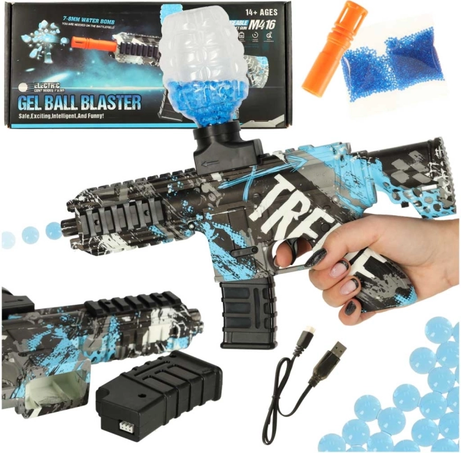 Opdag en sjov legetøjspistol til alle skydespilsfans – en vandbaseret gel-kuglepistol. Denne blå karabin giver masser af underholdning og styrker de manuelle færdigheder.