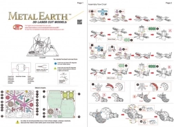 Fjern de enkelte dele fra metalpladerne; brug eventuelt små skævbidere (medfølger ikke). Delene forbindes ved hjælp af låse bestående af en tap (næb) og et hul. Bøj næbbet med små spidstang (medfølger ikke), og forbind gradvist alle låsene, indtil der opstår et meget realistisk mesterværk!
