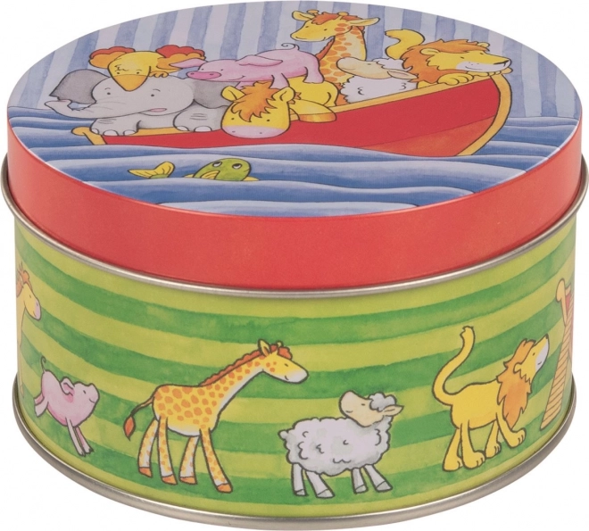 Den praktiske metalbeholder sikrer, at spillet er ideelt til opbevaring og til at tage med.