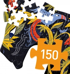 Puslespillet imponerer med sin utraditionelle silhuetform og detaljerede grafik, som gør det til både underholdning og dekoration efter lægning.