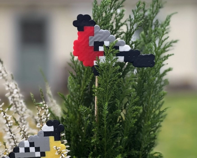 De mange kreative muligheder med Playbox-perler omfatter fremstilling af dekorationer, som for eksempel disse fuglepynt til blomsterkrukker.