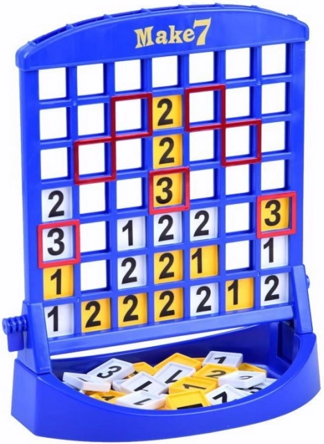 'Sæt 7' er et fremragende spil for både børn og voksne, der kombinerer logik og underholdning. Spillerne lægger på skift talbrikker i en plastikholder og forsøger at opnå den endelige sum syv. Takket være de enkle regler er spillet ideelt til hyggelige stunder i familien og til at udvikle færdigheder som at regne og planlægge.