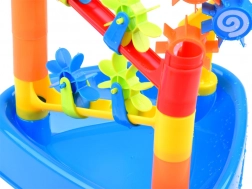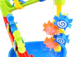 Denne farverige vand- og sandmølle giver børn endeløse muligheder for at udforske. Hæld blot sand eller vand i den øverste tragt, og se, hvordan strømmen vækker kaskaden af rør og baner til live, som sætter tandhjulene i rotation sammen med skovlene. Den stabile base og de afrundede former sikrer sikker og behagelig leg.