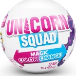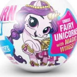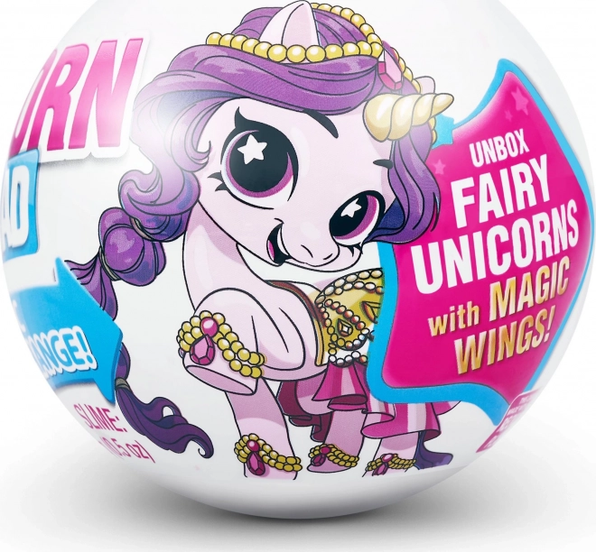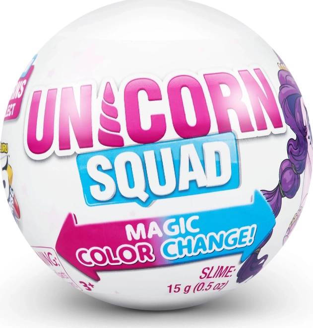 Pakken indeholder: en enhjørningsfigur, tøj, små sko, accessories, slim, klistermærker og en genanvendelig opbevaringskapsel.
