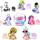 Skab din egen samling med 13 unikke enhjørninger, hvis farver og tilbehør giver din leg en ny dimension. Brug kammen til deres lange maner, klæd dem i moderigtigt tøj, og oplev magien ved enhjørningsslim.