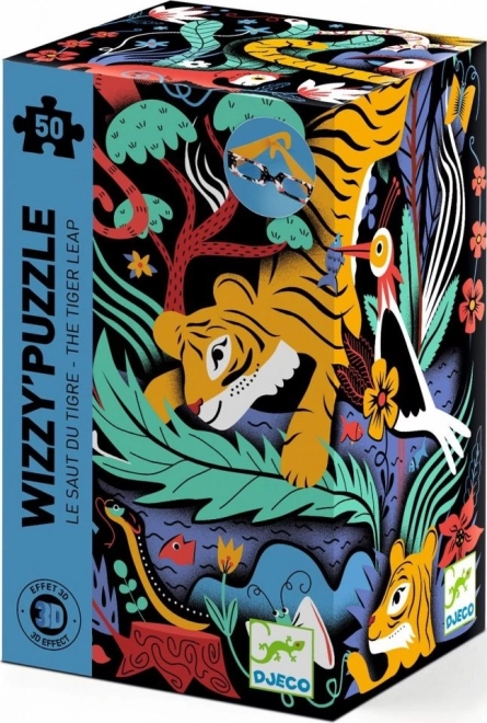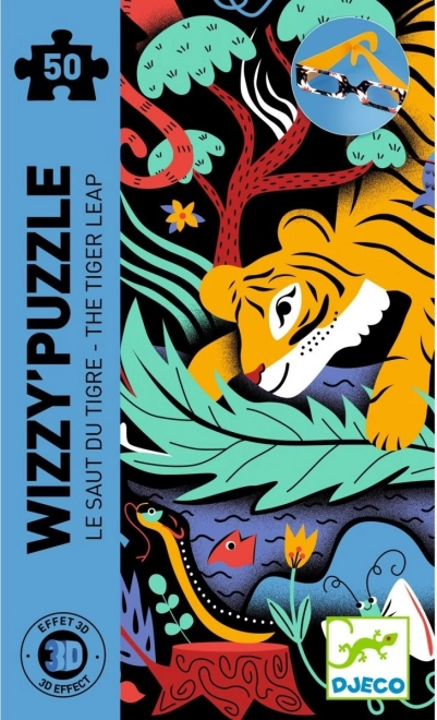 Stereoskopisk tigerpuslespil med 3D-briller. 50 brikker, realistisk 3D-effekt med briller, samlet mål ca. 34 × 48 cm. Fantastisk gave.