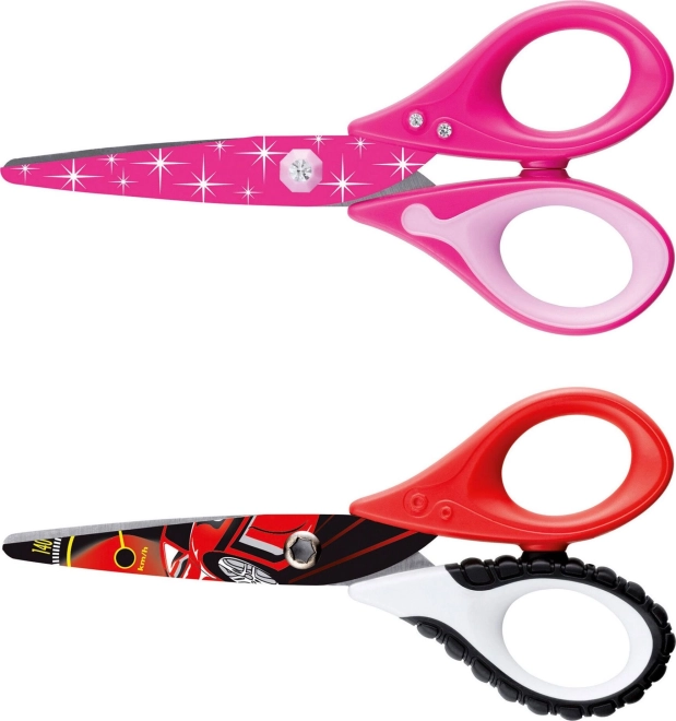 Saksene har afrundede spidser for øget sikkerhed og ergonomisk formede håndtag. Varianten Boy imponerer med en tekstur, der minder om et bildæk, mens varianten Girly har dekorative strassten. Illustrationsfoto – farver og motiv leveres tilfældigt efter aktuelt lager.