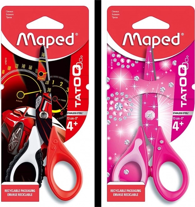 Oplev legende og sikker klipning med Maped Tatoo Innovation børnesakse. Takket være verdenspatenteret teknologi og speciel dekorativ lak tilbyder de jævnt, rent klip og samtidig holdbarhed til daglig brug i skole og derhjemme.