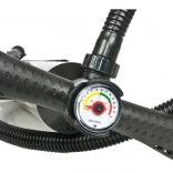 Håndpumpen ENERO er særligt designet til oppustning af paddleboards, hvilket sikrer nem og hurtig brug. Den tilbyder en integreret manometer til præcis trykmåling, et ergonomisk T-håndtag for komfortabel anvendelse og fodtrin for stabilitet.