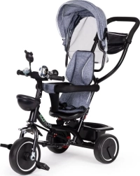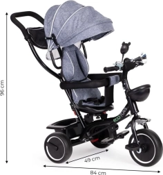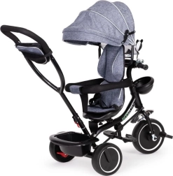 Udover det drejelige sæde tilbyder trehjuleren også to opbevaringskurve til yndlingslegetøjet. Med foldbare fodstøtter kan børnene hvile komfortabelt, mens forældrene har fuld kontrol. Cyklen er også udstyret med tre hjul og en bremse for sikker standsning.