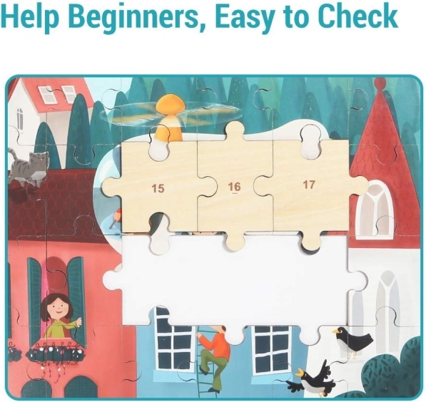 Oplev en smart 2‑i‑1-legeting: træpuslespil med transporttema og en plasthelikopter med åbneligt låg til opbevaring af brikker og andre skatte. Puslespilsbrikkerne er nummererede, så børn nemt finder rundt, og samlingen bliver både sjovere og mere lærerig.