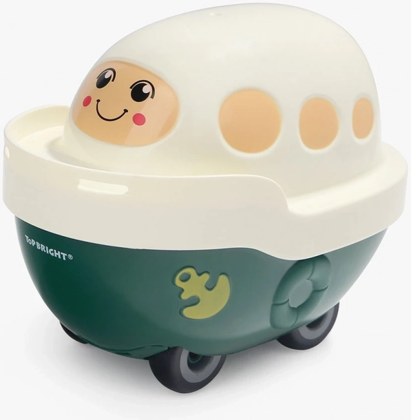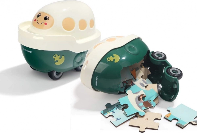 Den lille plastbåd med et sødt ansigt er et fuldt funktionelt legetøj. Den nederste låge kan åbnes og rummer hele puslespillet eller andre små skatte.