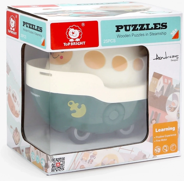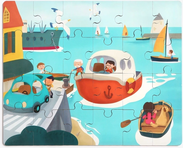 Oplev den smarte kombination af puslespil og legetøj i ét: træpuslespil med havnemotiv gemt i en sød plastbåd på hjul. Hver brik er nummereret for nemmere samling, styrker logisk og matematisk tænkning, og takket være det praktiske opbevaringsrum kan du altid have puslespillet ved hånden. Perfekt supplement til TOP BRIGHTs mini-serie af køretøjer og skaber et panoramapuslespil.