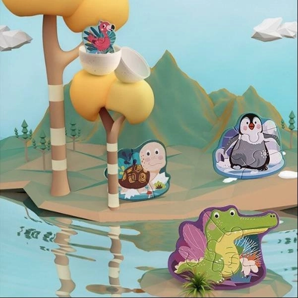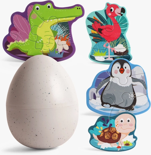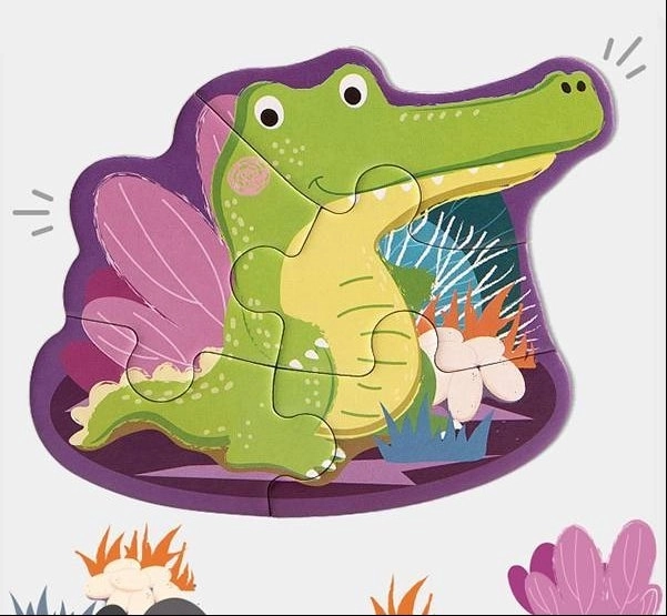 Dette legende sæt indeholder 4 dyrepuslespil med varierende sværhedsgrad (2, 3, 4 og 5 brikker), så det passer perfekt til dit barns tempo. Brikkerne er store, holdbare og behagelige at holde om – ideelle til de første puslespil.