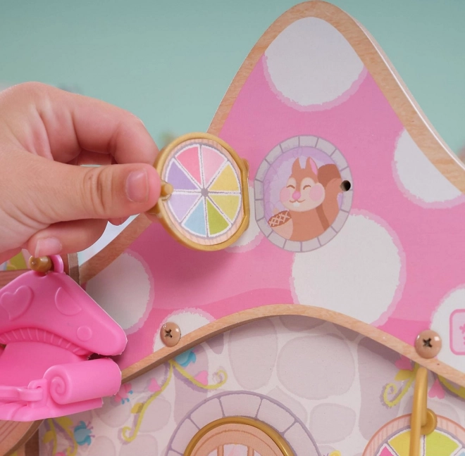 Det drejelige pariserhjul med lyserøde sæder tilføjer bevægelse og overraskelser til legen. Børn kan køre figurerne rundt og skabe nye eventyrlige scenarier.