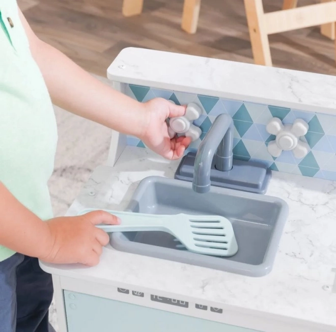 Træ-legetøjskøkkenet KIDKRAFT Play & Put Away er et gennemtænkt legesæt, der bringer glæden ved madlavning i en sikker form. Realistiske elementer som kogeplader med to betjeningsknapper, der klikker behageligt ved drejning, samt åbne-lukkedøre, stimulerer kreativ leg og udvikling af sociale færdigheder.