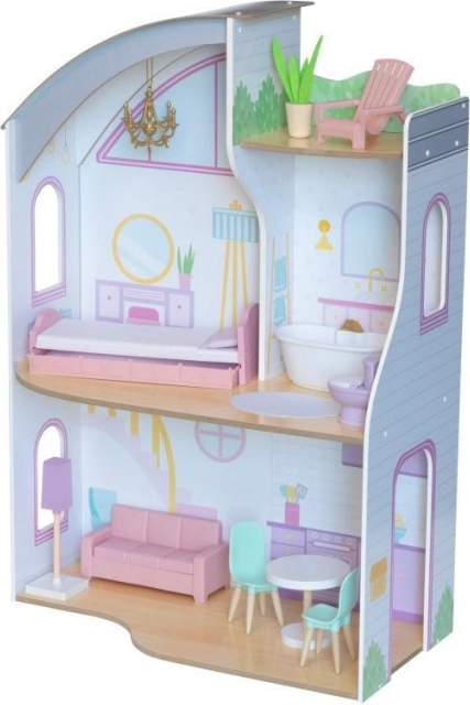 Det stilfulde KidKraft Elise dukkehus i pastelfarver giver børn uendelige lege­muligheder. Det byder på 2 etager, 12 møbeldele og 2 værelser med badeværelse. Takket være det lette, moderne design og den rummelige udformning er det ideelt til kreativ leg for børn fra 3 år.