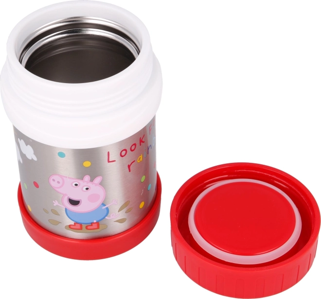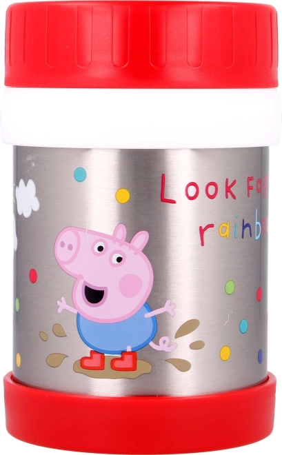 Den praktiske rustfri termomadbeholder med det glade PEPA PIG-motiv er perfekt til supper, pasta, grøntsags- og kødretter eller varm mælk. Den kvalitetsrige konstruktion hjælper med at holde madens temperatur i flere timer, uanset om I er i skole, på tur eller på legepladsen.
