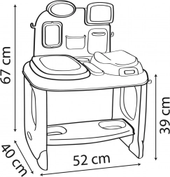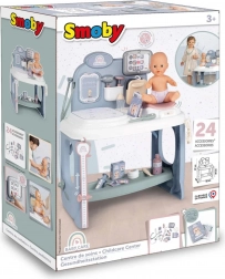 SMOBY BABY CARE børneplejecenter er ideelt til små læger. Det tilbyder realistiske elementer til at undersøge “patienten” – en dukke eller bamse – fra måling og vejning til at lytte til hjertet. Aftagelig elektronisk tablet med knapper, LED og lyde giver interaktiv vejledning til behandlingsforløb.