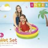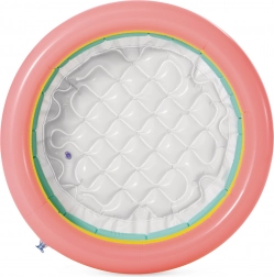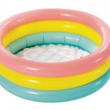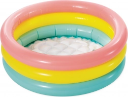 Tre oppustelige ringe i fremtrædende nuancer af pink, gul og grøn giver bassinet tiltrækningskraft og opfordrer børn til leg.