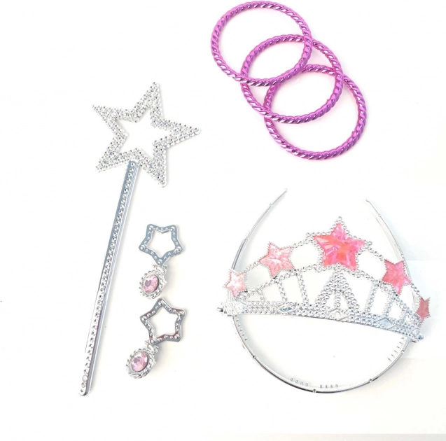 Dette prinsessesæt med accessories er det perfekte valg for alle små eventyrelskere. Med kombinationen af krone, øreringe og armbånd bliver enhver leg hurtigt til et kongeligt eventyr.