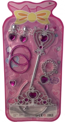 Dette magiske tilbehørssæt forvandler ethvert barn til en prinsesse på et øjeblik. Sølvfarvede dele med lyserøde og lilla hjerteformede sten støtter kreativ rolleleg og giver ethvert kostume et festligt udtryk.