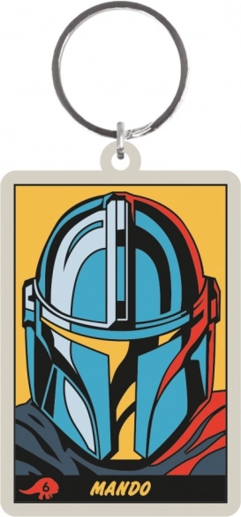 Holdbar nøglering med markant hjelm-motiv og teksten Mando – et praktisk tilbehør til fans til hverdag.