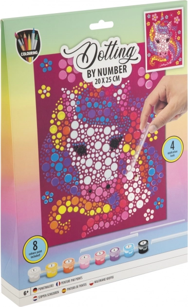 Forvandl din fritid til en kreativ oplevelse. Lærredet med nummererede prikker guider dig trin for trin – hvert tal svarer til en bestemt farve. Resultatet er et imponerende enhjørningemotiv, som du stolt kan udstille.
