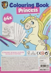 Malebog A5 med 64 kreative billeder giver sjov for børn. Temaer som Enhjørning, Prinsesser, Dino og Pirater inspirerer små kunstnere.