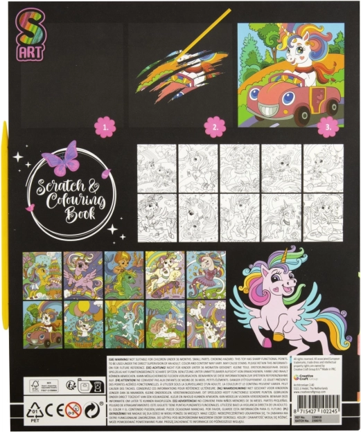 Dette kreative sæt kombinerer to populære aktiviteter i ét – ridsning og farvelægning. Børn kan først ridse frem strålende motiver og derefter farvelægge på den anden side. Med den medfølgende plastikpen er arbejdet nemt og sikkert.