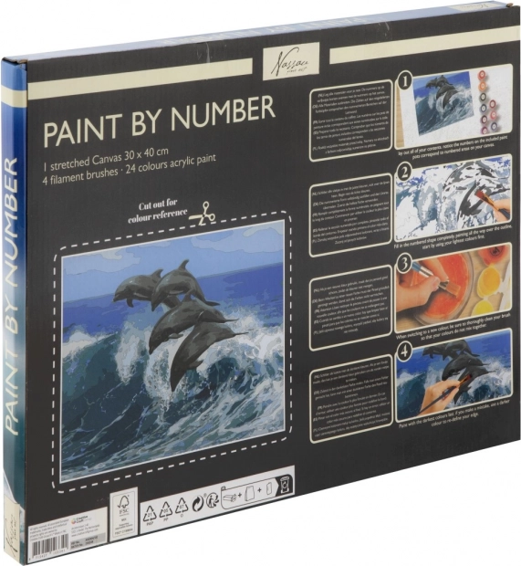 Dette kreative sæt gør det nemt at skabe et imponerende billede med havtema. Farv blot de nummererede felter med de tilsvarende farver, så vokser en realistisk scene med dynamiske delfiner frem. Takket være det opspændte lærred er resultatet klar til at blive udstillet med det samme.