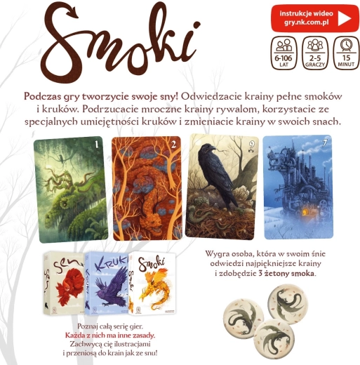 Smoki bringer helt nye mekanikker til den elskede spilfamilie som SEN, KRUKI og KOTY. Hver runde er fyldt med spænding og taktik: kombiner kort, justér drømme, og brug klogt de særlige evner, der påvirker spillets forløb. Takket være enkle regler og et frisk tempo er spillet et fremragende valg for både familier og venner.