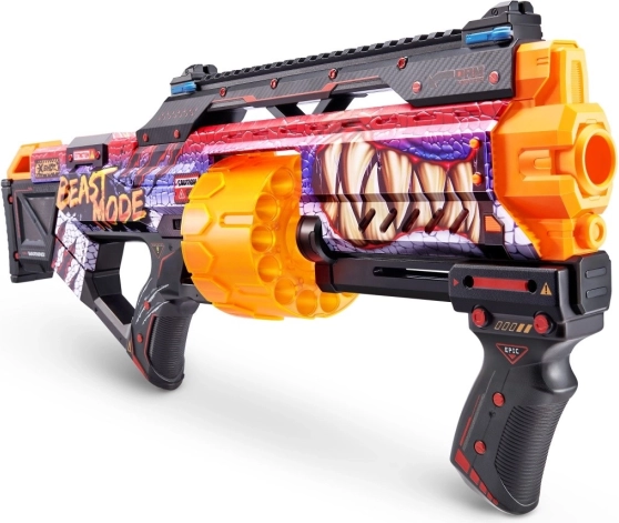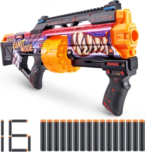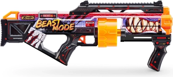 Gå ind i action med kraft og stil: X-Shot Skins Last Stand Beast Mode kombinerer et attraktivt e-sport-look med praktisk ydeevne. Den roterende tromle rummer op til 14 pile, så du kan affyre den ene efter den anden, mens den taktiske greb og ladeskinne sikrer smidig betjening.