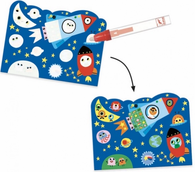 Når vandet tørrer, vender billederne tilbage til deres oprindelige udseende, og legen kan starte forfra. Se4ttet indeholder også en klud og en praktisk lynlåspose, så alt kan pakkes bekvemt og holdes organiseret på rejser.