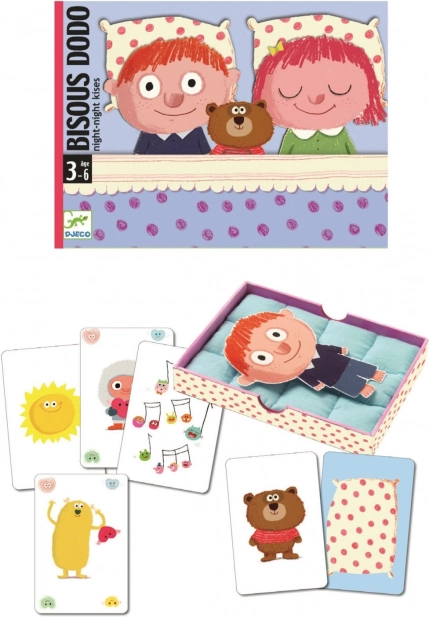 Dette spil er designet til at give en sjov og beroligende aftenritual for både børn og voksne. Børnene samler kort med symboler på kys, sange og kilden. Spillet slutter, når barnet har samlet alle kortene 93lagen94, 93pude94 og 93tæppe94.
