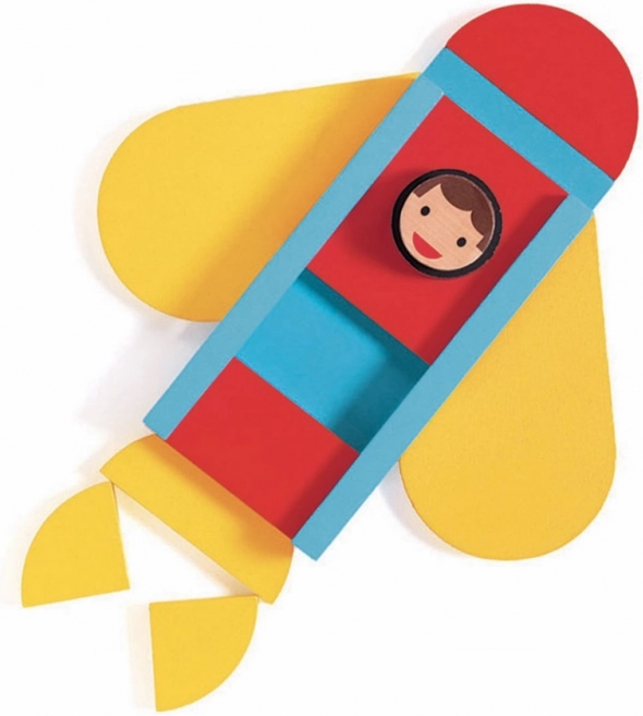 Sættet indeholder 33 farverige træbrikker i forskellige former, der opmuntrer børn til at lege og bygge forskellige transportmidler.