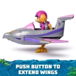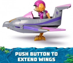 Skyes falkeinspirerede køretøj giver børn autentiske legeoplevelser fra Paw Patrol: Jungle. Med et enkelt tryk på forenden aktiveres transformationen – vingerne foldes ud, næbbet åbnes, og kløerne drejes for et stabilt standpunkt under redningsaktionen.