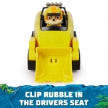 Den populære makker Rubble kommer med et robust køretøj, der byder på en imponerende transformation til redningstilstand. Tryk på Paw Patrol-emblemet på motorhjelmen for straks at dreje gravemaskinens skovl, som afslører et næsehornshorn. Åbn det bageste rum, løft kranarmen, og brug nedrivningskuglen til at fjerne enhver forhindring.