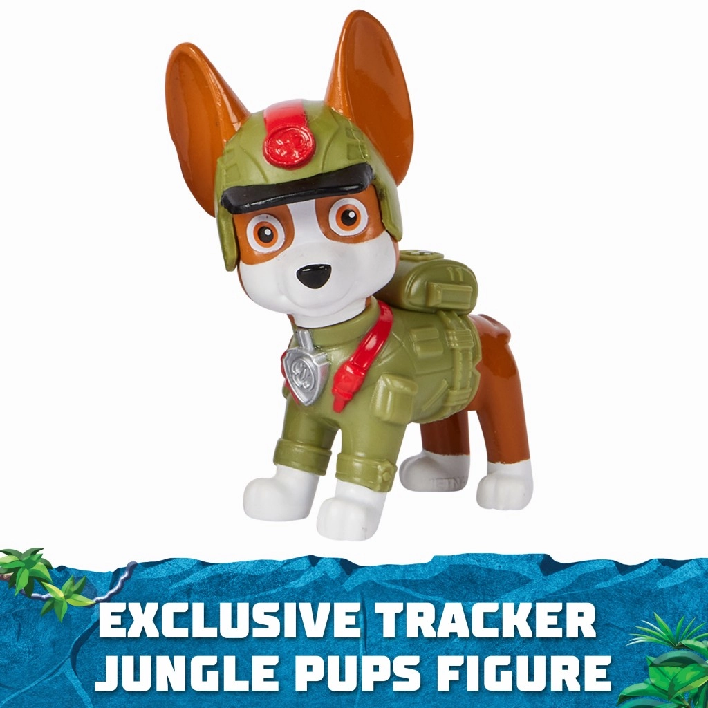 Træd ind i eventyrets verden med Tracker og hans junglekøretøj. Det er nok at løfte halen, ørerne og affyringsporten, lade projektilet og trykke på Paw Patrol-emblemet, så hæver køretøjet sig og fuldender transformeringen til redningstilstand. Børn kan dermed genskabe yndlingsscener fra serien og udvikle fantasi og finmotorik.