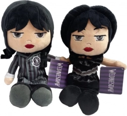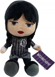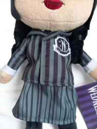 Oplev magien fra den elskede seriefigur med vores stilfulde plysdukke Wednesday Addams. Denne 32 cm dukke er trofast skabt i to ikoniske dragter: den grå skoleuniform Nevermore og den ekstravagante sorte kjole, som hun havde på til Nevermore Rave'N Dance.
