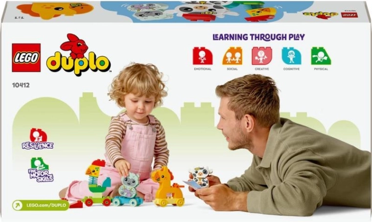 Oplev glæden ved at bygge for de allermindste! LEGO DUPLO Min første dyretog (18M+) giver sjov læring i farver, finmotorik og kreativt byggeri. Børn bygger fire søde dyr, sætter dem i farverige vogne med hjul og tager på en fantasifuld tur. Sættet har også en fleksibel hanehals, sammenkoblelige vogne og kort med inspiration for nemt byggeri.