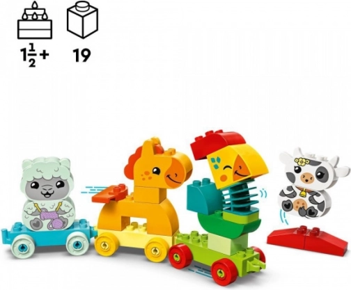 LEGO DUPLO dyretoget vil glæde alle små dyre- og køretøjsfans. Børn bygger en hane, en hest, et får og en ko, sætter dem i farvematchende vogne og drager ud på et eventyrligt togkørsel. Takket være de store klodser er sættet let at samle og understøtter læring gennem leg.