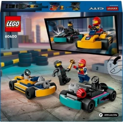 Start motorerne! Dette kompakte sæt indeholder to gokarts i iøjnefaldende farver, to minifigurer af kørere og et trofæ, så spændende dueller på banen kan begynde på ingen tid. Den enkle bygning af 99 dele er ideel til yngre byggere og giver en hurtig overgang fra byg til leg.